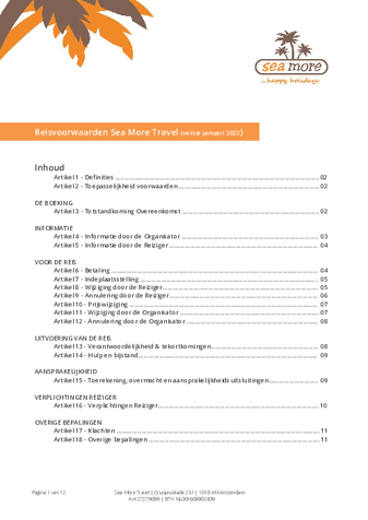 Organisator: Sea More Travel ingeschreven onder KvK-nummer 27279099.